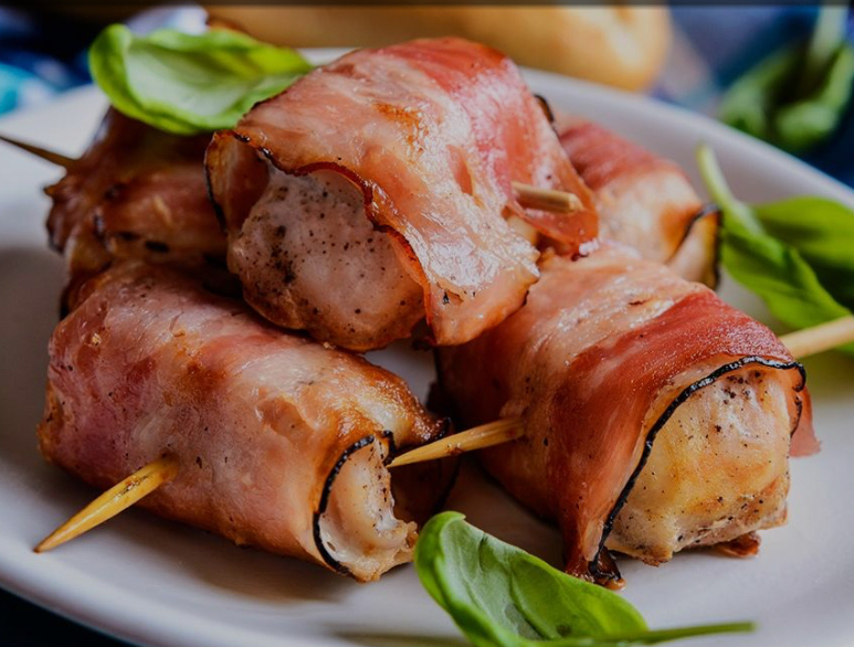 Coloque num tabuleiro próprio e leve ao forno quente durante cerca de 15 minutos (até o bacon ficar ligeiramente tostado).