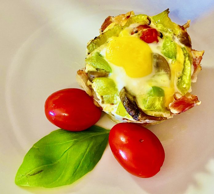 Num tabuleiro de formas de queques, unte com um pouco de manteiga as concavidades e polvilhe com farinha. Coloque duas fatias de presunto em cruz em cada queque, coloque os cogumelos, queijo ralado, e o tomate cherry cortado ao meio e o pimento picado. Numa frigideira coloque o azeite e alhos e frite um pouco, junte o tomilho, tempere com sal e pimenta e os cogumelos deixe até os cogumelos ficarem macios. Esprema o sumo do limão, reserve. Leve ao forno pré aquecido a 180º até o queijo ter derretido, mais ou menos 10 minutos. Retire, abra os ovos e coloque um em cada queque, tempere com pimenta e sal. Leve novamente ao forno só para cozer a clara, não deixe cozer muito a gema, mais ou menos 5 minutos. Se gostar da gema mais cozida adicione logo no início. Retire, deixe arrefecer um pouco e sirva, como entrada, lanche ou mesmo uma refeição acompanhada com uma salada a gosto.