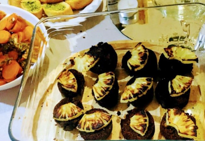 Normalmente utilizo um pirex e borrifo todo com spray da espiga. Corto as rodelas do ananás ou utilizo o ananás em calda, nem sempre conseguimos encontrar o fruto de ananás. Corto a farinheira as rodelas e coloco o ananás em cima da farinheira, e vai ao forno até o ananás estar dourado….