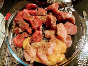 - 400g de lombo de novilho cortado em cubos