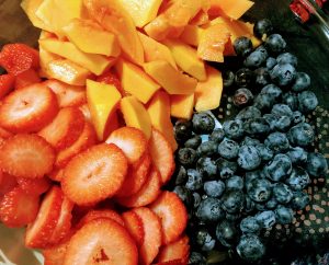 - Fruta a gosto cortada em pedaços ou fatias
