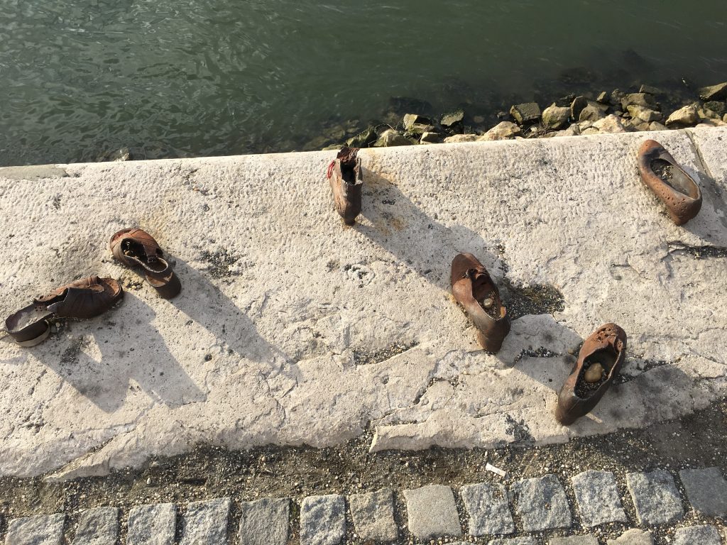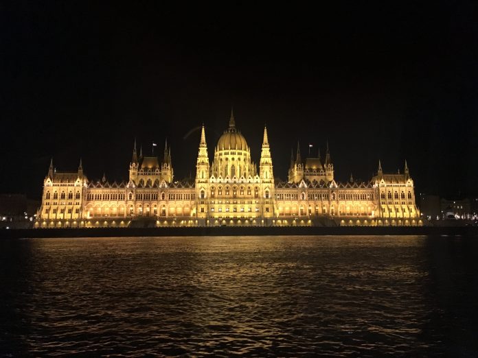 Não há nada, mais romântico, que apreciar Budapeste iluminada do rio Danúbio, marcando um passeio de barco e saborear um Jantar delicioso, com Música Tradicional. Este é um passeio fantástico pelo rio Danúbio, cerca de 1h30m, onde pudemos observar a cidade toda iluminada, viajamos pelo rio e saboreamos um delicioso jantar  ouvindo musica ao vivo. As Luzes de Budapeste vistas do rio são um quadro iluminado da cidade, pudemos observar os principais edifícios todos iluminados. O Rio Danúbio atravessa a Europa, passando por 5 Países, divide a cidade de Budapeste em 2 -Buda e Peste – deixando a oeste, na margem direita, a tranquila Buda e a leste, na margem esquerda, a cosmopolita Peste. Duas cidades somadas numa das capitais mais belas e sofisticadas da Europa. Depois há ainda a ilha Margarida, entre as duas margens, que, como pulmão verde da cidade, completa a pintura.Numa das margens do rio, podemos ver sapatos cravados no chão, que pertenceram a pessoas que foram fuziladas nessa margem!!