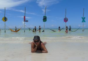 A Ilha Holbox, é uma pequena ilha, localizada no extremo norte do Estado de Quintana Roo, México, onde vivem cerca de 600 pessoas. O nome significa na cultua maia, yucateco “olho negro”, pertence ao município de Lázaro Cárdenas, fica a 10 km ao norte da costa noroeste da península de Yucatán. Possui uma extensão de 40 km de comprimento e 2 km de largura, e cerca de 34 quilómetros de praias para o norte. Encontra-se unida intermitentemente com a península, por uma grande faixa de areia, com vários canais que a unem ao mar, á Laguna Yalahau e ao Cabo Catoche, Fizemos 1h20 de autocarro, onde apanhamos o barco para Holbox, onde desfrutamos de paisagens fantásticas, onde desfrutamos de um banho no mar verde esmeralda de aguas quentes, este recanto paradisíaco leva-nos ao imaginário, será aqui o paraíso… Ao chegar a Holbox almoçamos um delicioso peixe frito no Clube da Praia de Mantarraya, aproveitamos para tirar umas fotos neste paraíso tropical, e desfrutar da praia.