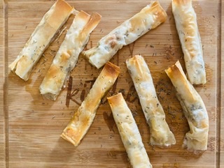 IPPré-aqueça o forno a 180g. Estenda uma folha de massa filo numa bancada. Pincele a superfície generosamente com manteiga. Corte a folha em 4 quadrados ou retângulos (dependendo do tamanho). Coloque o tomilho na borda de cada quadrado. Dobre a borda cerca de 2 cm / ¾ “e pincele com um pouco de manteiga. Esfarele um pouco de queijo de cabra na borda oposta. Polvilhe um pouco de mel ao lado do queijo. Comece a enrolar a massa do lado do queijo, em direção ao tomilho, até ficarem com aspecto de charuto. Coloque numa travessa coberta com papel manteiga. Pincele com a manteiga restante. Leve ao forno por cerca de 15 minutos, até ficar crocante e dourar. Sirva imediatamente.