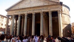 O Panteão, lugar de todos os Deuses, uma das mais bem preservadas estruturas romanas antigas e permaneceu em uso por toda a sua história. Localizado na Piazza dellaRotonda, o Panteão tem sido utilizado como uma igreja, dedicada à “Santa Maria e os Mártires” chamada e informalmente de Santa Maria Rotonda desde o século VII. É uma basílica menor da Igreja Católica.