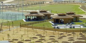 O espaço exterior é muito amplo, com slides, piscina exterior e interior fabulosas, com uma casa de madeira bastante grande para as crianças brincarem.